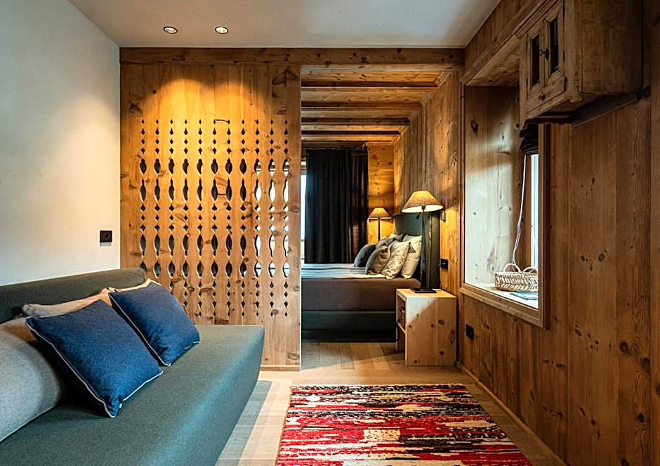 This large suite is furnished in Cembran pine wood and features a seating area and a shower with Turkish bath functions. It comes with free WiFi, independent heating and a flat-screen TV with satellite channels.